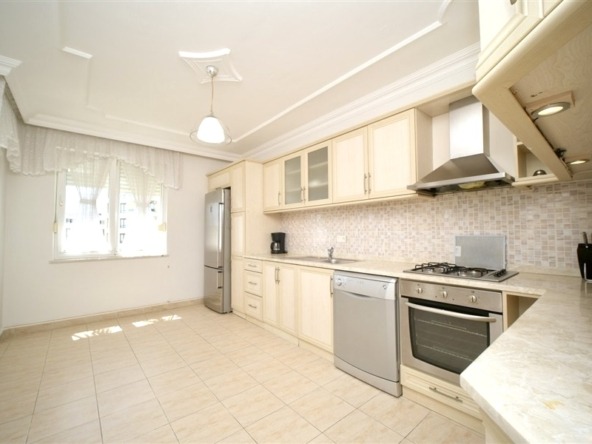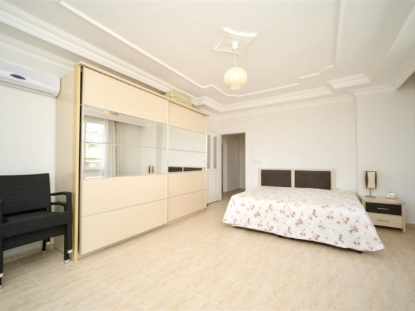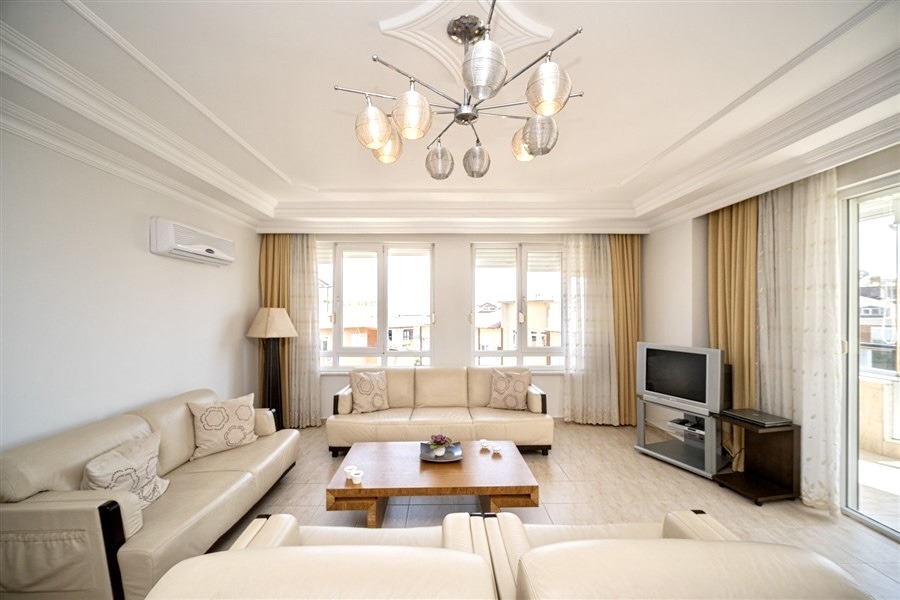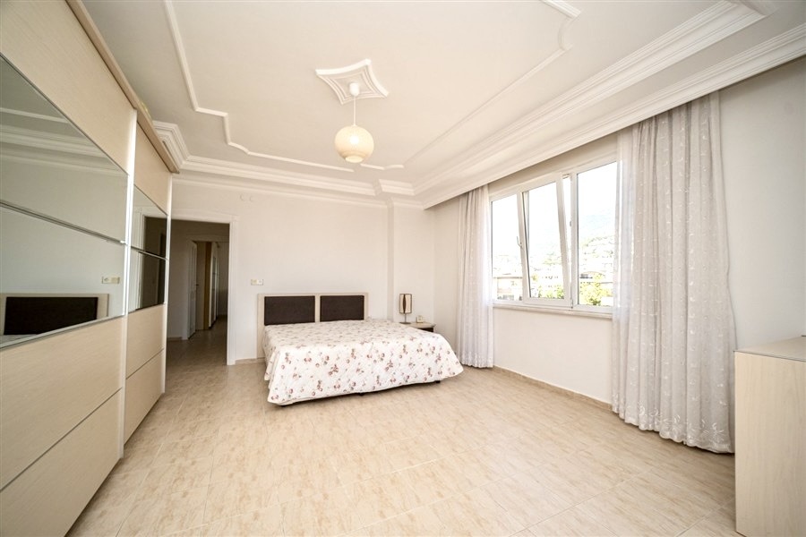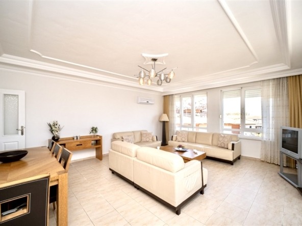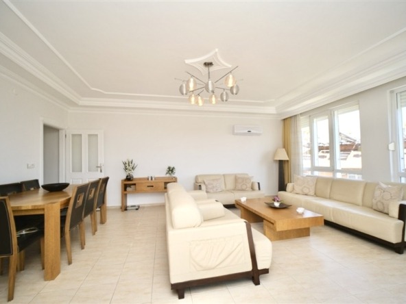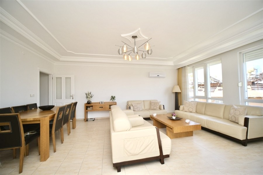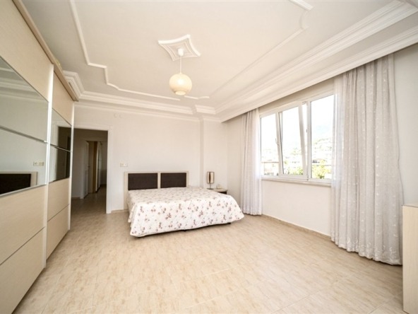 Denne 190 m² store og rummelige 3+1 lejlighed er beliggende midt i Alanya centrum, lige ved siden af byens livlige handelsområde, og tilbyder en enestående mulighed for dig, der søger komfort og en prestigefyldt beliggenhed. Lejligheden har en velgennemtænkt planløsning med 2 badeværelser og 3 store balkoner, som giver masser af dagslys hele dagen.