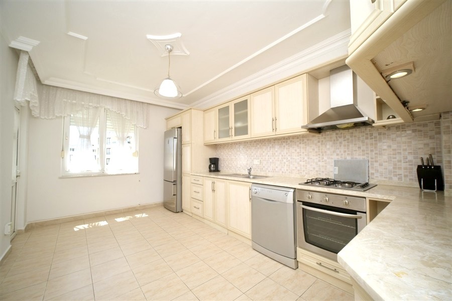 Denne særlige lejlighed er ideel både til helårsbeboelse og som investeringsmulighed og hører til blandt de få boliger i Alanya centrum, der tilbyder et fuldt indflytningsklart liv.